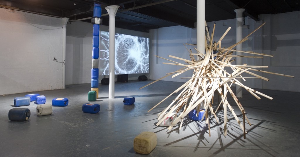 Forces is a group exhibition that investigates artists that relinquish control to natural forces or attempt to harness them in their work. Each work is made from found objects that, by exploiting specific scientific properties of the materials, the artists have created dynamic works where functional objects are re purposed and become animated. Radiation, electricity, electrical resonance, entropy and gravity are manipulated in order to create works where the final outcome is uncertain. Frequently flirting with danger, the exhibition becomes a high energy, tense environment.